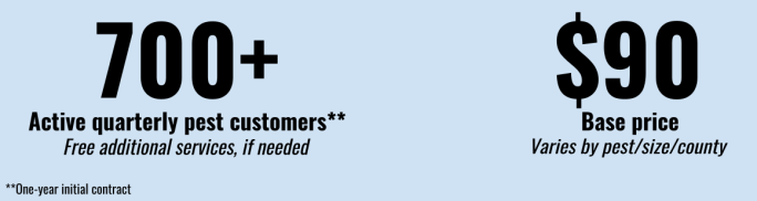 Prices for pest control services are based on the property’s location, square footage, and the particular issue.